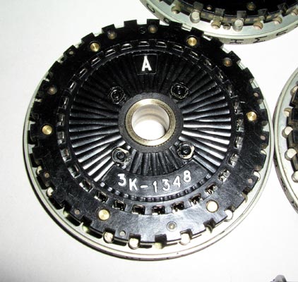 This is a closer view of the input or right side of the special test reflector. These contacts receive voltages from the Input Wheel and reflect them right back to adjacent contacts on the input wheel.