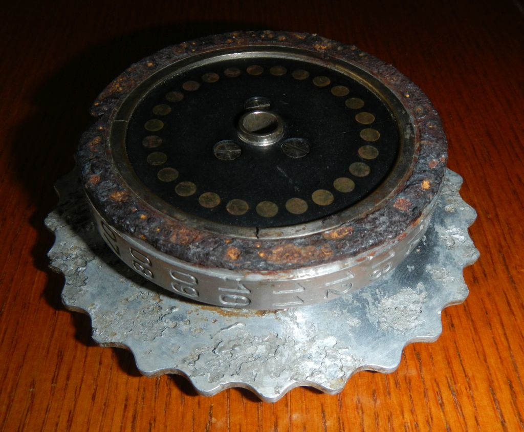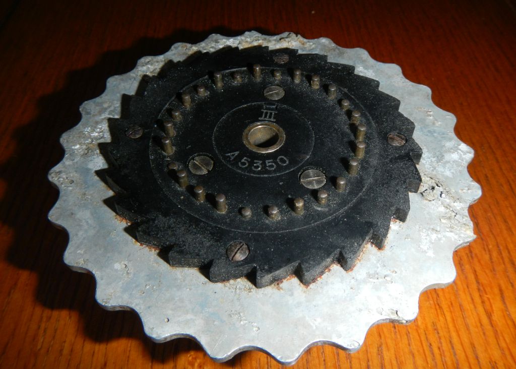 This is an original Enigma rotor dug from the ground in a WWII battlefield. This is Enigma rotor number III with Serial Number A5350. This serial number tells us that this rotor was manufactured in Berlin in 1936 and issued with the 3-rotor Enigma machine with serial number A5350. This Enigma rotor saw service with the German military from 1936 through to sometime close to the end of the war in May of 1945.