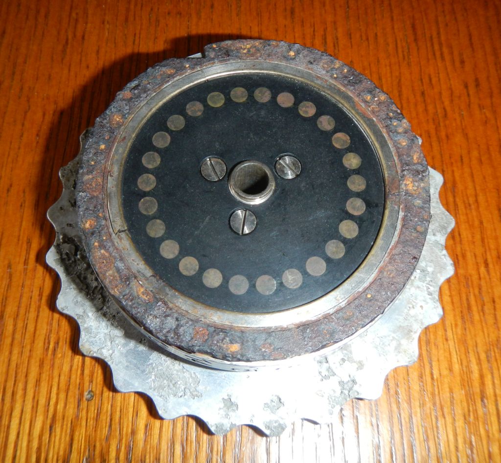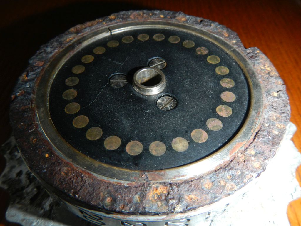 This is an original Enigma rotor. It is intact and in stable condition. There is corrosion and rust on various metal surfaces and most of the spring loaded contacts have seized in place. This is not a working rotor. This rotor is for display. Please see the pictures below.